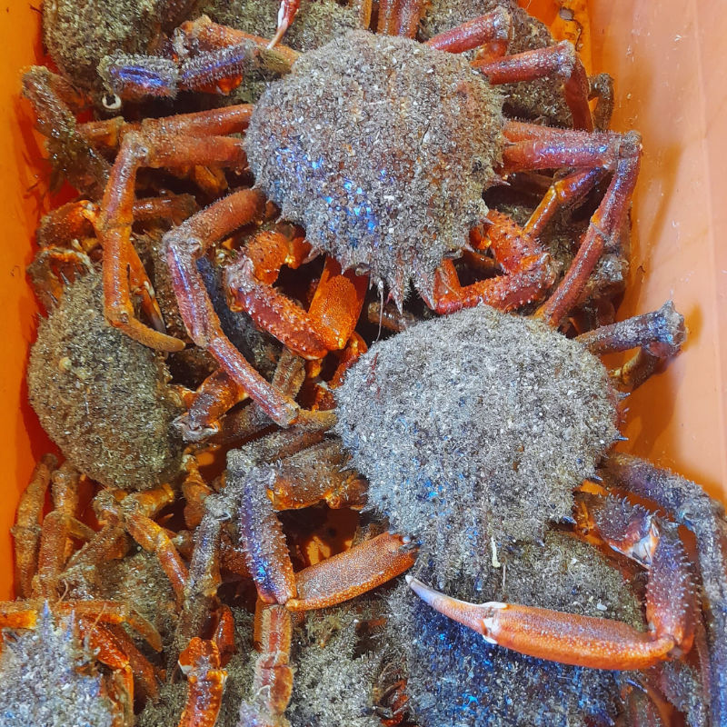 Centolla gallega fresca de la Costa da Morte. Capturada mediante pesca artesanal en el mar de Laxe y comercializada directamente desde nuestra lonja.